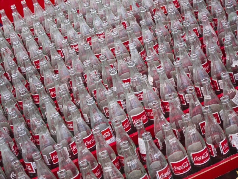 dozens of empty coke bottles